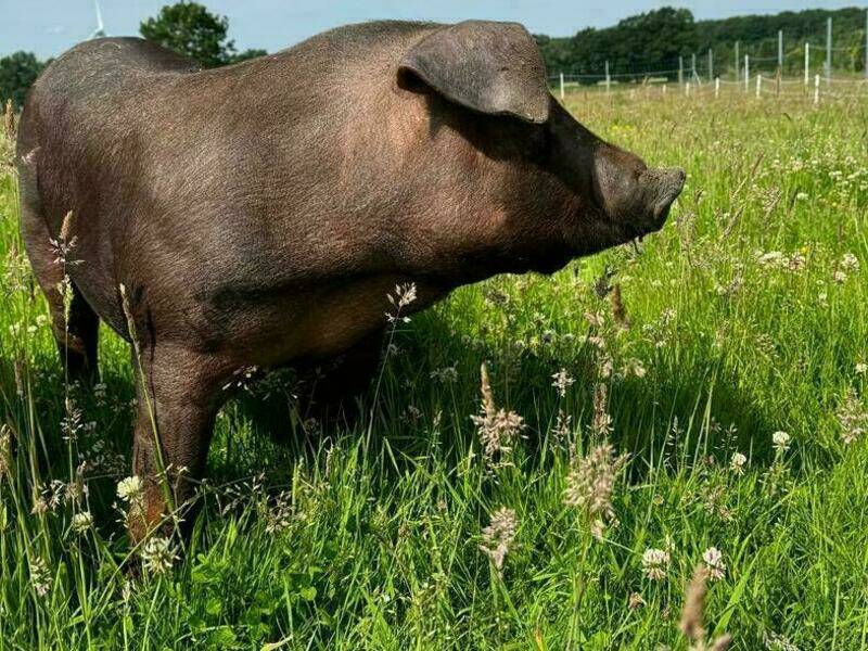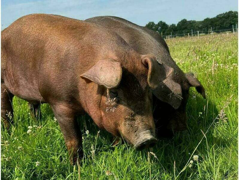 Das Fleisch der Duroc-Schweine besticht durch seine tiefrote Farbe und die feine Fettmarmorierung, die für ein besonders zartes und saftiges Geschmackserlebnis sorgt. Der hohe intramuskuläre Fettanteil verleiht dem Fleisch eine außergewöhnliche Saftigkeit und einen intensiven, aromatischen Geschmack, der es von herkömmlichem Schweinefleisch abhebt.